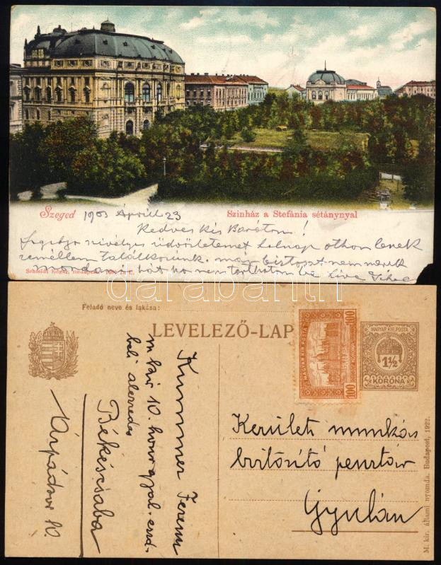 cca 1903-1922 2 db levelezőlap, az egyiken Kummer Ferenc m. kir. 10. honvéd gyalogezredbeli alezredes soraival, a másikon a Szegedi Nemzeti Színház képével