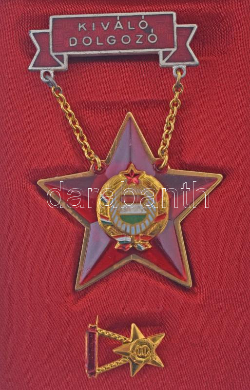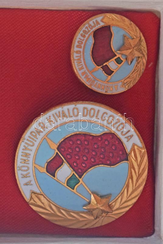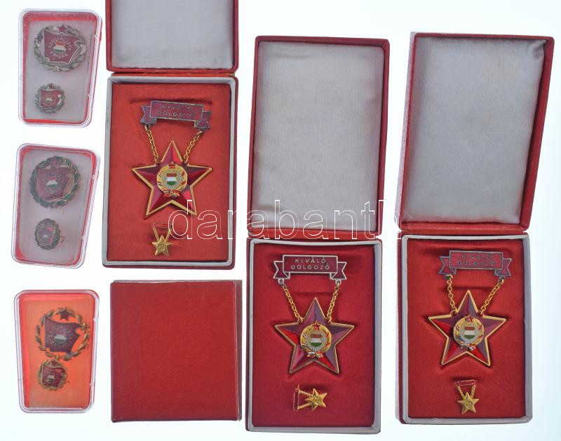 Szocialista kitüntetés és jelvény tétel, benne: Kiváló Dolgozó (3x), tokban, minivel + Könnyűipar Kiváló Dolgozója minivel, tokban + Szocialista Briágd (3xklf) arany, ezüst és bronz fokozatok