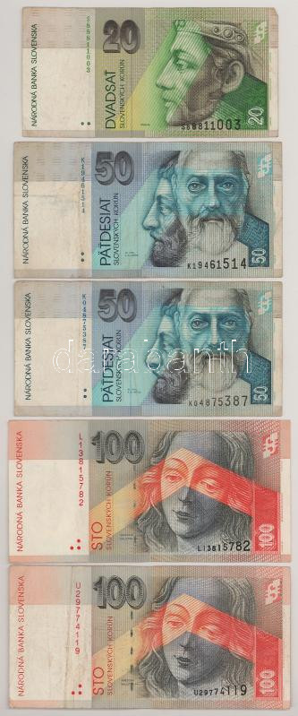 Slovakia 1997-2001. 100 Korun (2x) + 2002. 50 Korun (2x) + 2004. 20 Korun C:F
