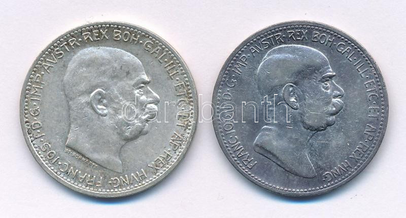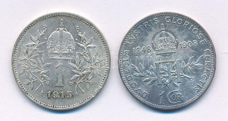 Ausztria 1908. 1K Ag "Ferenc József - Jubileum" + 1915. 1K Ag "Ferenc József" T:VF patina