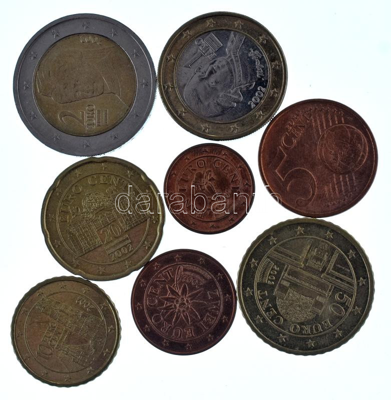 Austria 2002 1 Cent - 2 Euro (8xdiff) coin set C:AU,XF