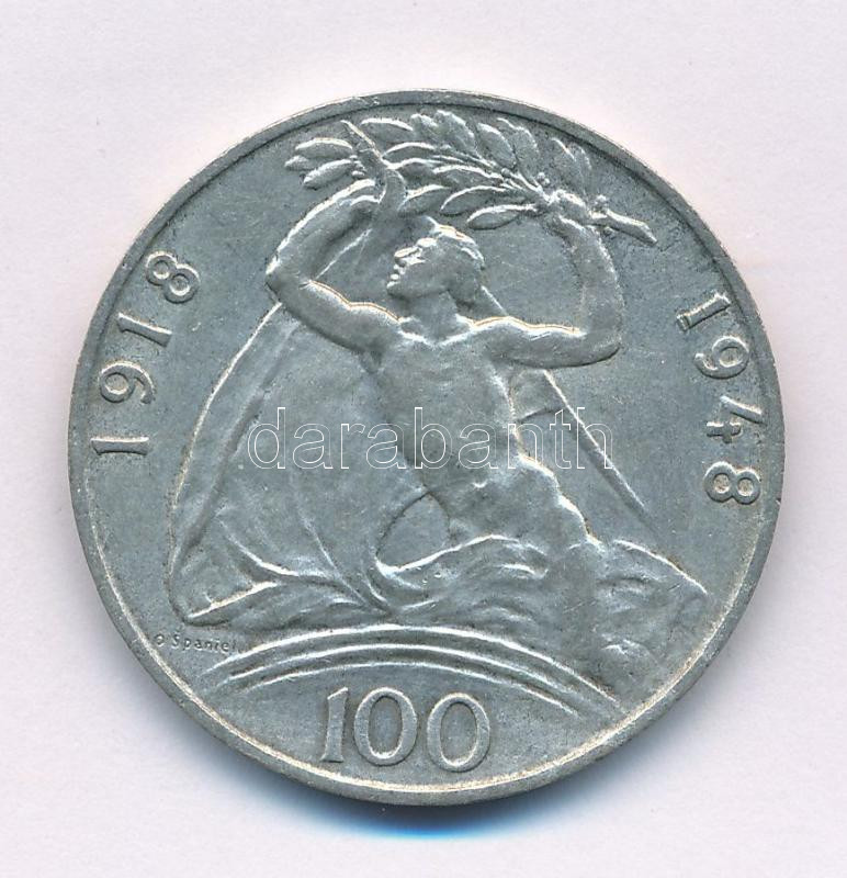 Czechoslovakia 1948. 100 Korun Ag "Independence" C:AU small patina