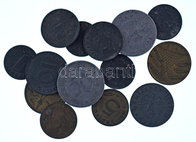 Német Harmadik Birodalom 1936-1944. 1pf-50pf Al-bronz, Zn és Al érmék (15xklf évszám/verdejel) közte: 1938F 5pf, 1938G 5pf, 1938E 10pf, 1942E 50pf T:XF-F