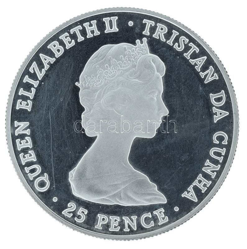 Tristan da Cunha 1980. 25 Pence Ag "80th Birthday of Queen Mother" C:PP slightly hazy, small scratch