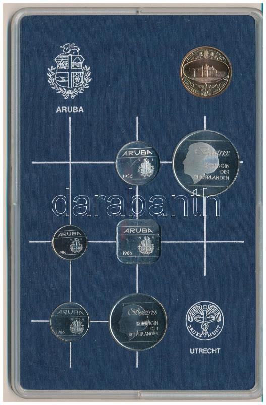 Aruba 1986. 5 Cents - 2 1/2 Florin (6xdiff) + "Aruba" token in set, in plastic case C:UNC
