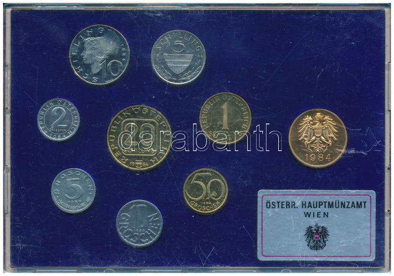 Ausztria 1984. 2gr-20Sch (8xklf) forgalmi sor + "Hauptmünzamt" verdei zseton, műanyag tokban T:PP patina