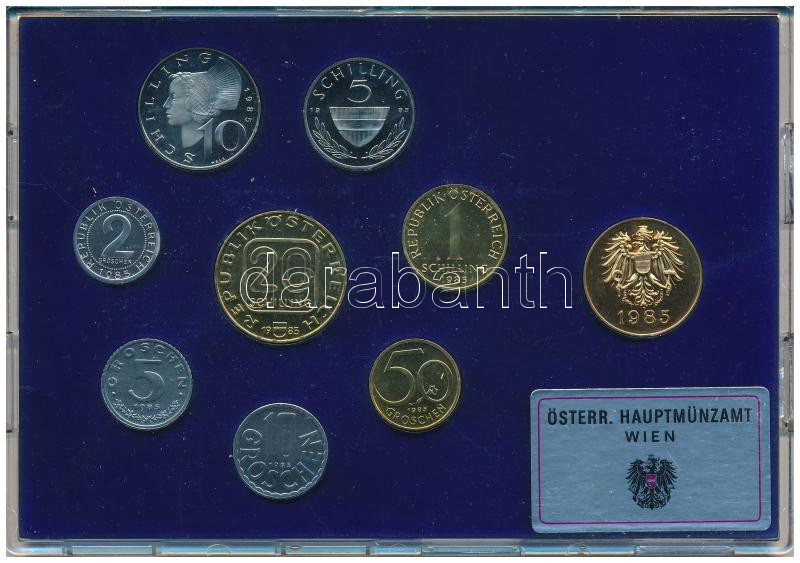 Ausztria 1985. 2gr-20Sch (8xklf) forgalmi sor + "Hauptmünzamt" verdei zseton, műanyag tokban T:PP patina