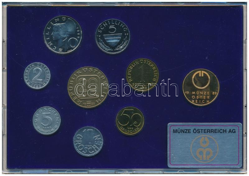Ausztria 1989. 2gr-20Sch (8xklf) forgalmi sor + "Münze Österreich" verdei zseton, műanyag tokban T:PP patina