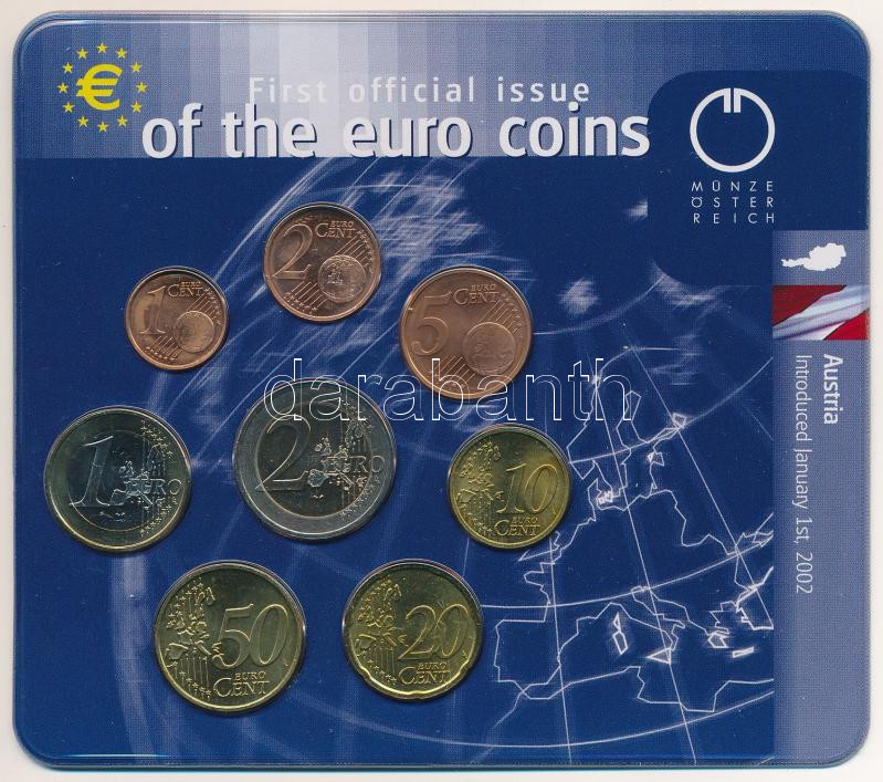 Ausztria 2002. 1c-2E (8xklf) forgalmi sor "Az Euró érmék első hivatalos kiadása" szettben T:UNC