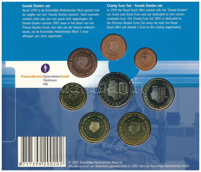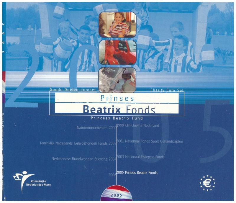Netherlands 2005. 1 Cent - 2 Euro (8xdiff) coin set "Prinses Beatrix Fonds" in cardboard sheet C:UNC