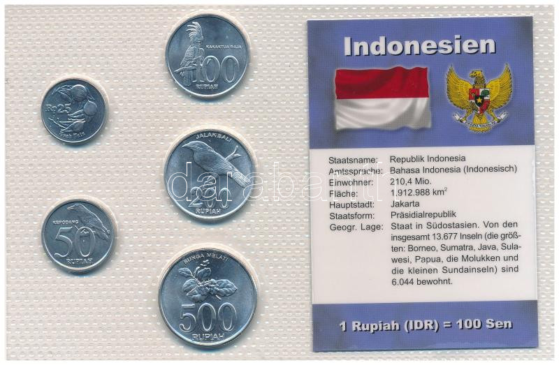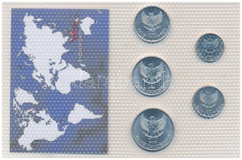 Indonesia 1994-2003. 25 Rupiah - 500 Rupiah (5xdiff) "Coins of the world" vacuum-packed circulation coin set, with certificate C:UNC