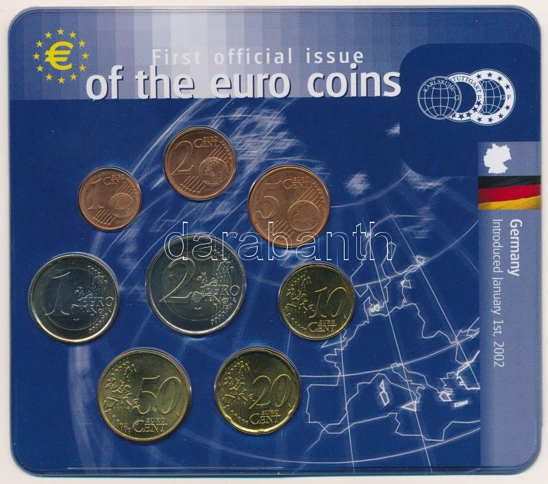 Német Szövetségi Köztársaság 2002F 1c-2E (8xklf) forgalmi sor "Az Euró érmék első hivatalos kiadása" szettben T:UNC