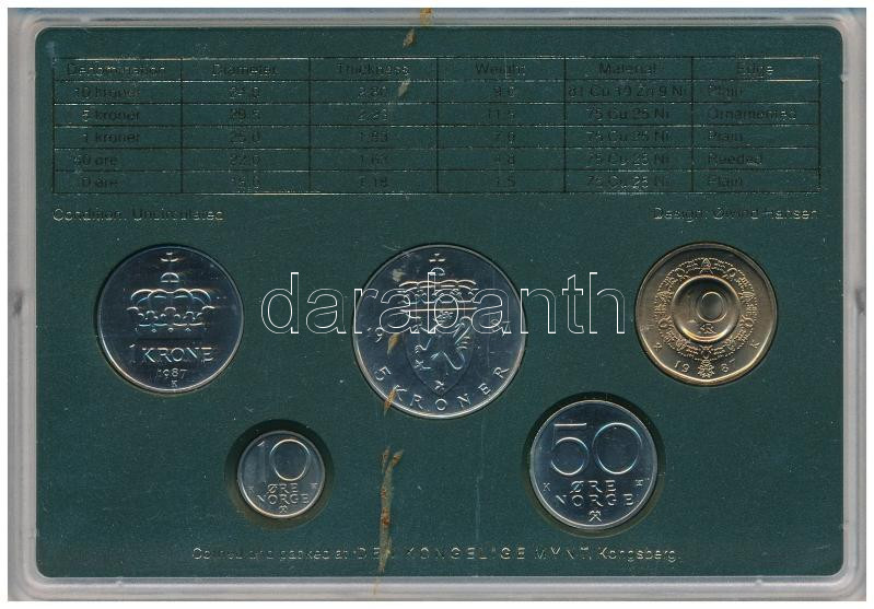 Norvégia 1987. 10ö-10K (5xklf) forgalmi sor műanyag tokban T:UNC
