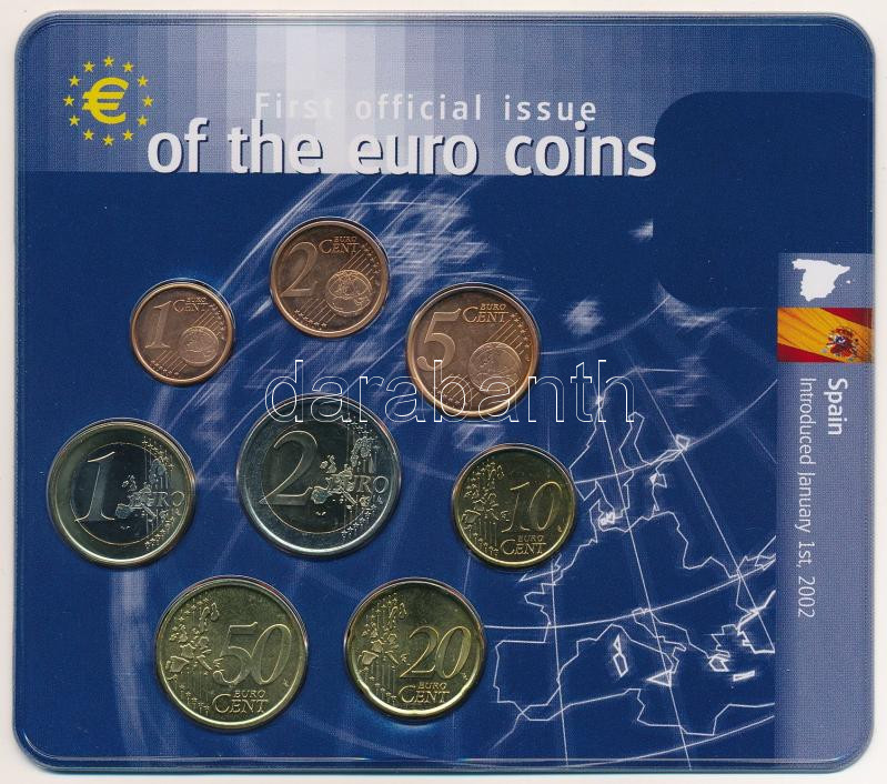 Spanyolország 2001. 1c-2E (8xklf) forgalmi sor "Az Euró érmék első hivatalos kiadása" szettben T:UNC