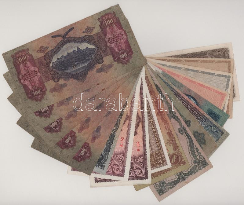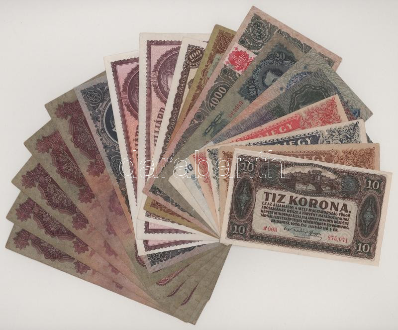 Vegyes, 18db-os korona, pengő tétel: 1915-1946. 20P-10.000MP (13db) + 10.000AP-1.000.000AP (3xklf) + 10K (2xklf) T:vegyes