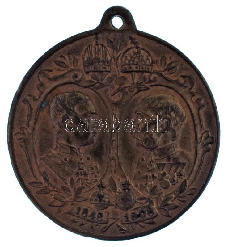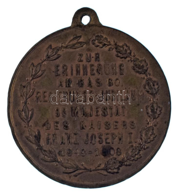 1908. Osztrák-Magyar Monarchia "Ferenc József uralkodásának 60. évfordulója" "ZUR ERINNERUNG AN DAS 60. REGIERUNGS JUBILAUM Sr MAJESTAT DES KAISERS FRANZ JOSEPH I. 1848-1908" bronz medál (33mm) T:AU,XF