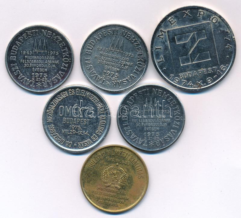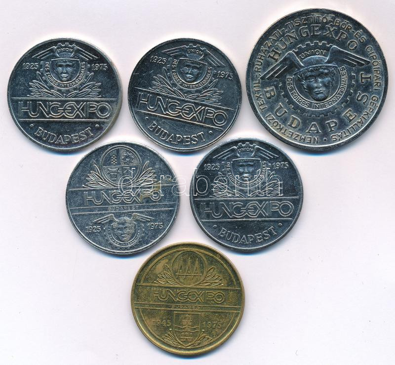 1974-1975. "HUNGEXPO" kétoldalas fém emlékérem (6db, 4xklf, benne: LIMEXPO, Tavaszi Budapesti Nemzetközi Vásár, OMÉK, Bolgár Nemzeti Kiállítás) T:AU,XF