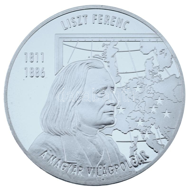 2011. "Liszt Ferenc 1811-1886 - A magyar világpolgár / Liszt Ferenc emlékév" ezüstözött Cu-Ni emlékérem tanúsítvánnyal, dísztokban (39mm) T:PP
