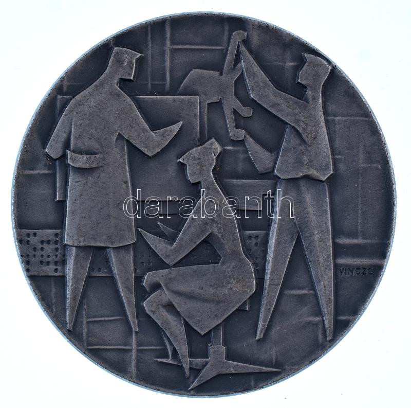 Vincze Dénes (1914-1972) 1960. Ezüstpatinázott bronz szocreál plakett (78mm) T:AU,XF