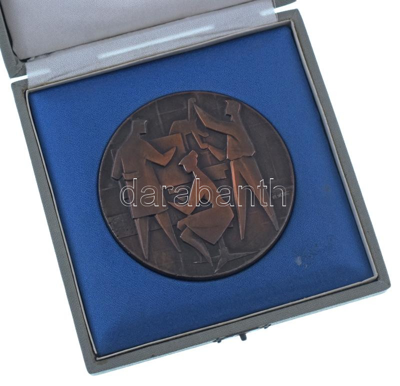 Vincze Dénes (1914-1972) DN Szocreál tudomány témájú egyoldalas bronz emlékérem (78mm) dísztokban T:UNC patina
