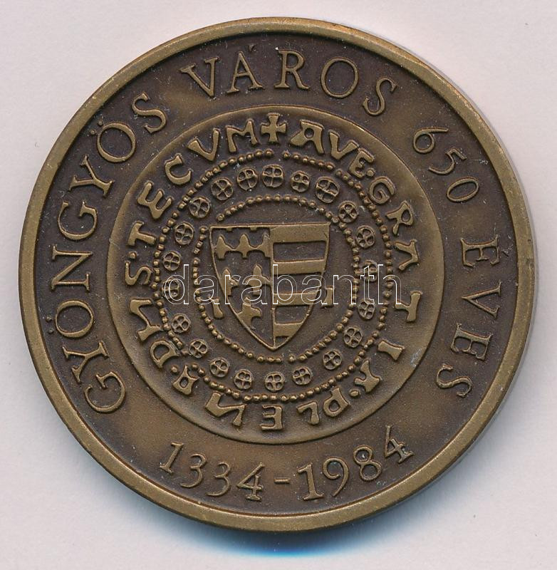 Bognár György (1944-) 1984. "MÉE Gyöngyös / 650 éves Gyöngyös - Róbert Károly" bronz emlékérem (42,5mm) T:AU