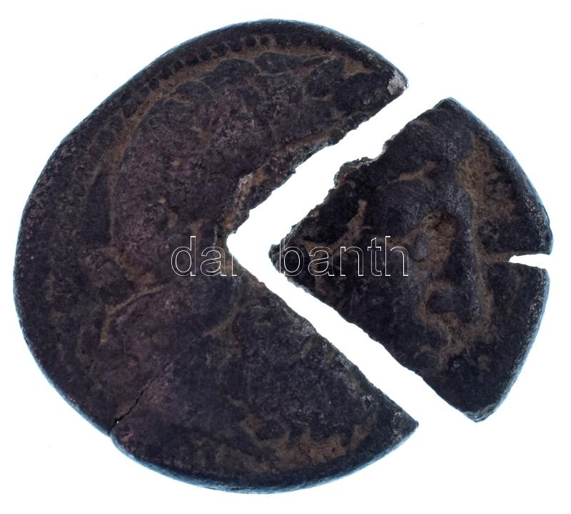 Keleti Kelták / Dunai régió Kr.e. 3-2. század k. II. Philipposz makedón király Ag Tetradrachmájának imitációja 1/4 rész kivágással, a kivágott résszel együtt (a két rész együtt: 13,65g) T:F két részben
