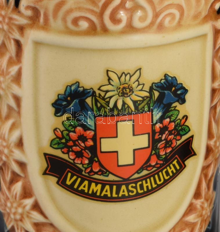 2 db sörös korsó ónfedeles kerámia, hibátlan 20 cm, 12 cm