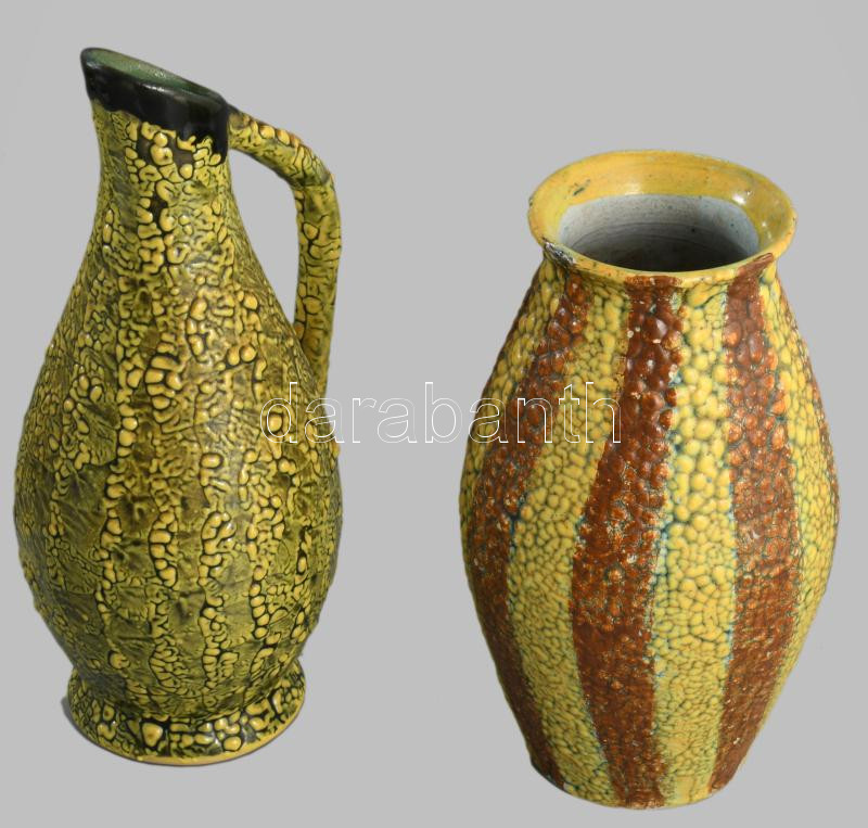 Bán Károly 2 darab váza, egyik jelzett, egyik sérült, m: 21 cm alatt