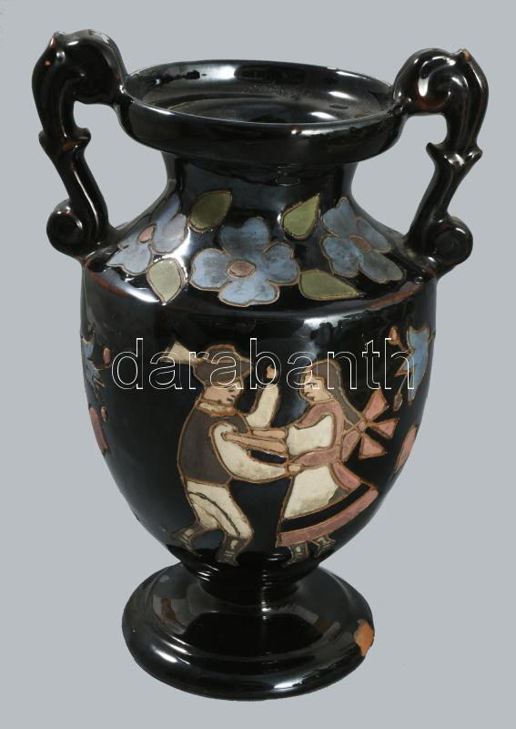 Bertalan Korond 1942 váza, táncoló pár díszítéssel, sérüléssel, m: 19 cm