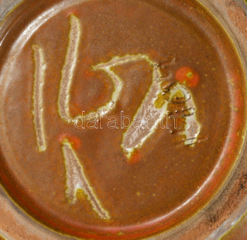 Bzs jelzéssel: mázas kerámia kaspó, jelzett, hibátlan d: 15 cm, m. 12 cm