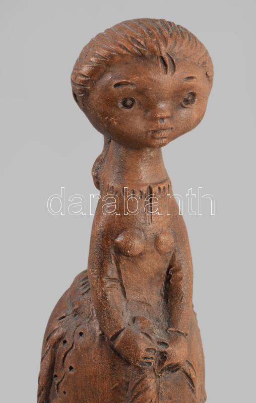 Kőfalvi Gyula (1920-1986): Lány. Jelzett, engóbozott kerámia, m. 17,5 cm
