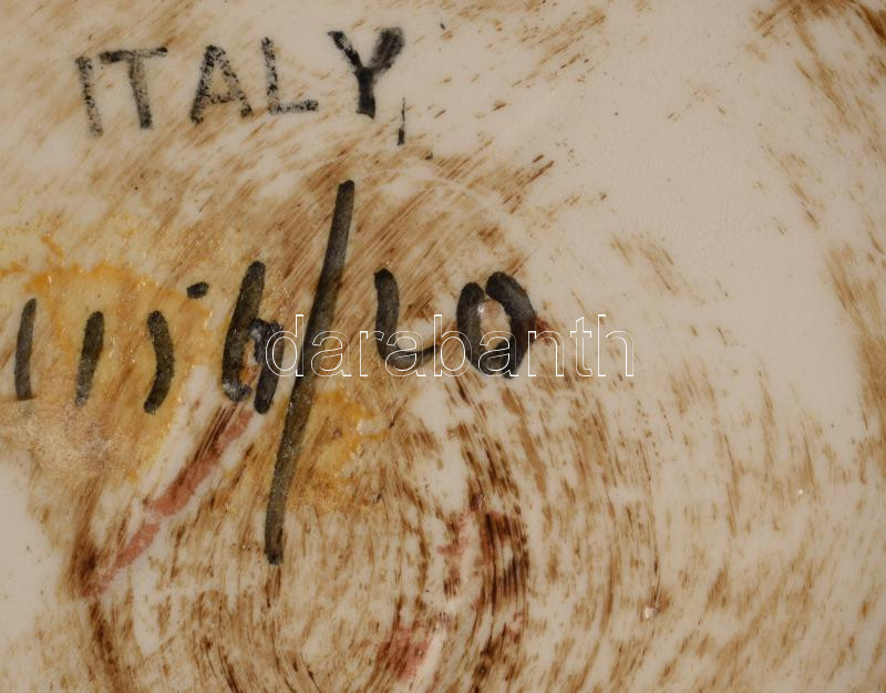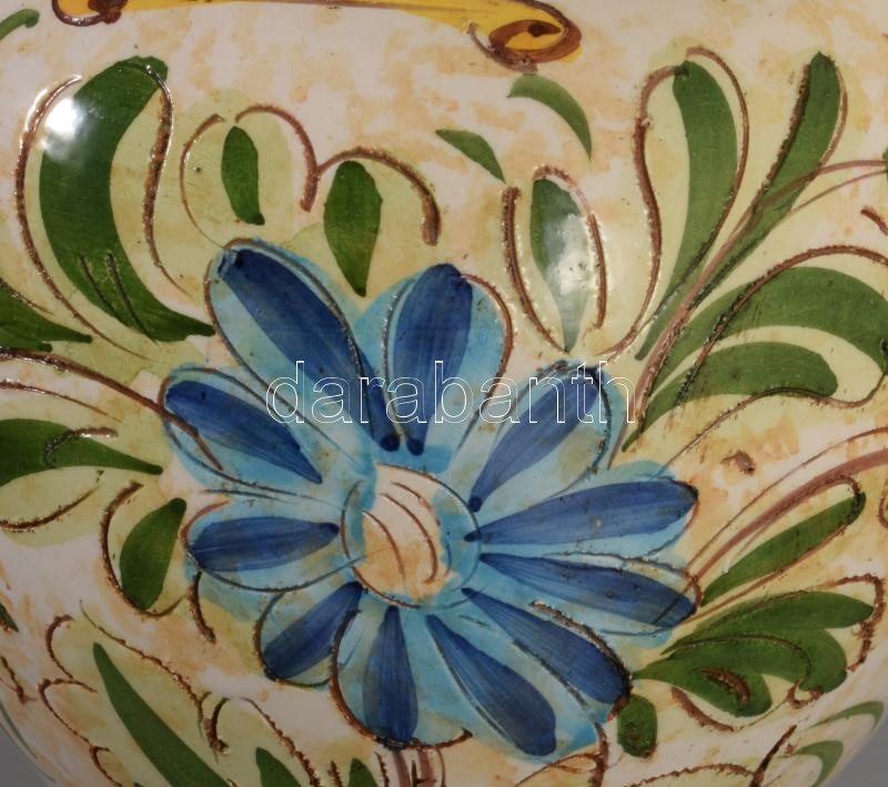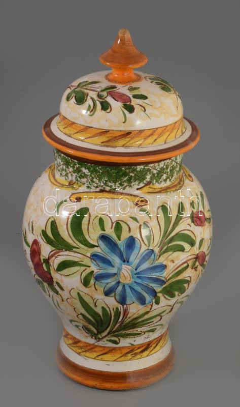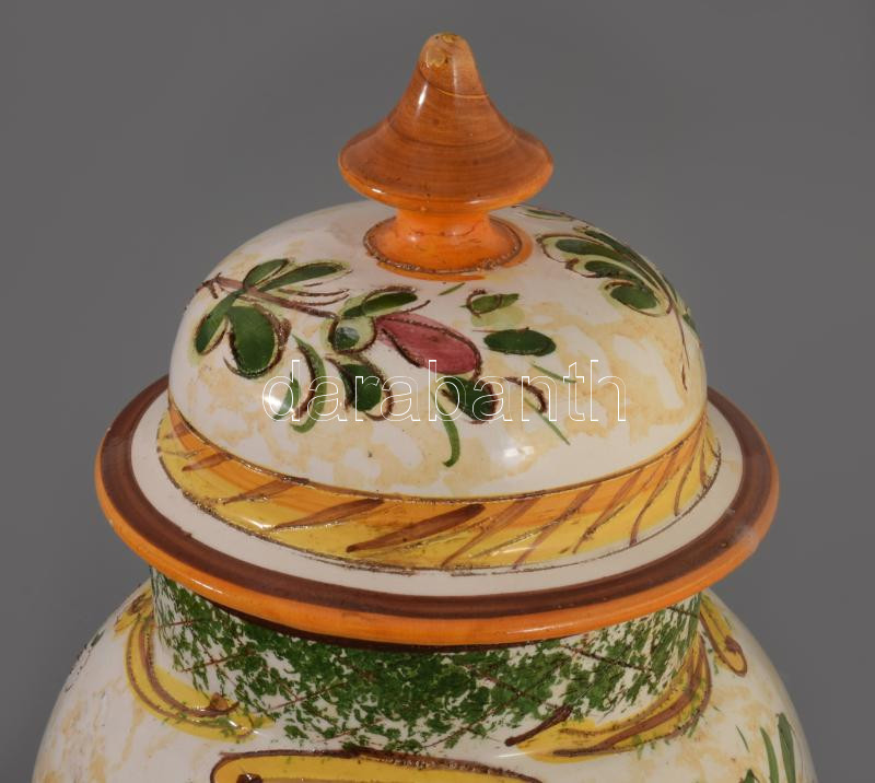 Olasz festett és karcolt mintás fedeles váza, jelzett, kis mázkopással, m: 29 cm