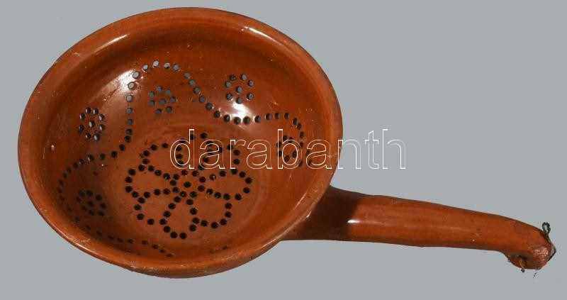 Tésztaszűrő. 20. sz. első fele, magyar, kis mázhibával, h: 34 cm