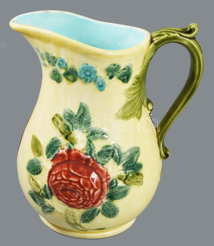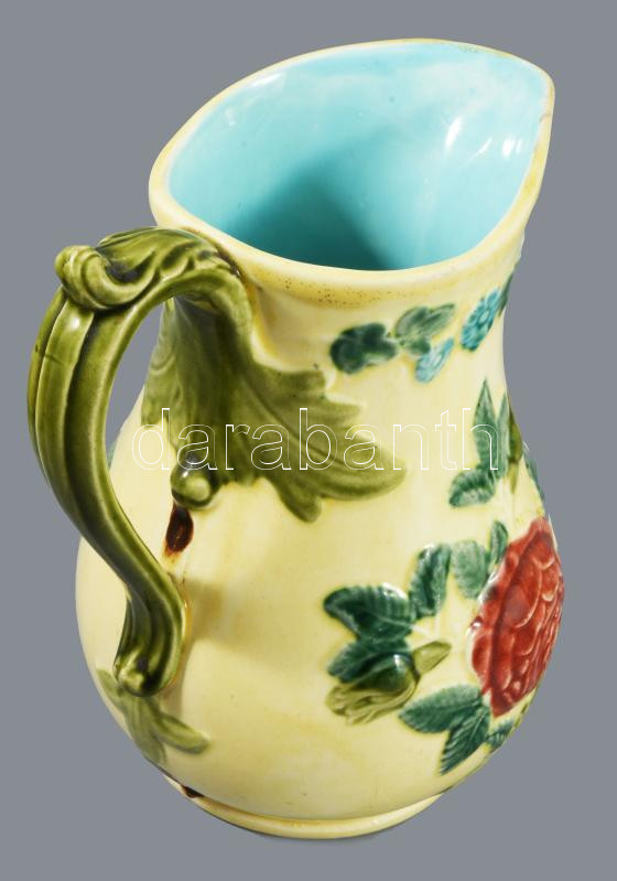 cca 1900 Luneville francia fajansz kancsó, jelzett, felületi hibával, m: 19 cm