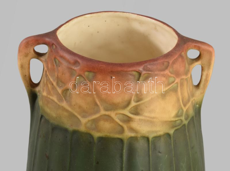 cca 1910-1920 Plasztikus szecessziós díszítésű fajansz váza, jelzett, kis kopással, m: 21,5 cm