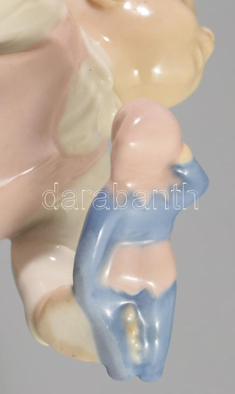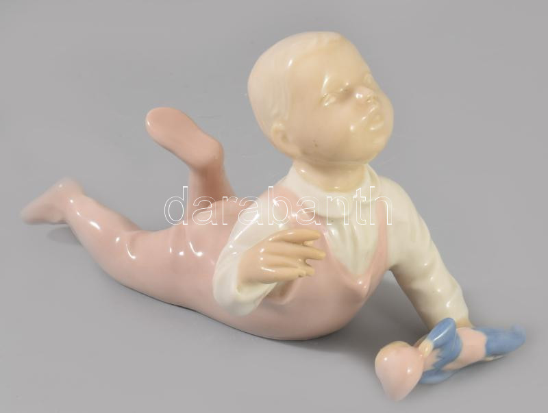 1959 Royal dux: kisgyermek babával. Porcelán, jelzett, hibátlan 15 cm