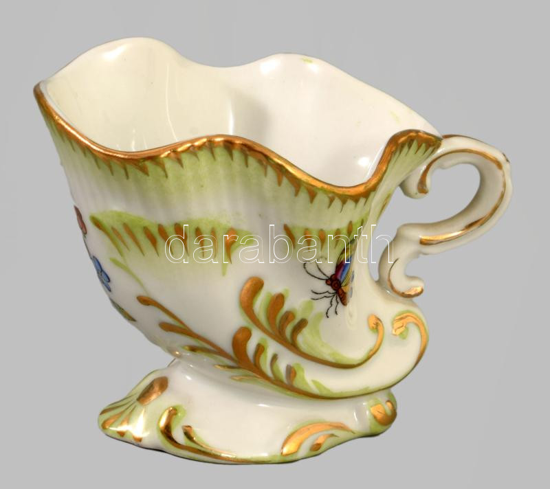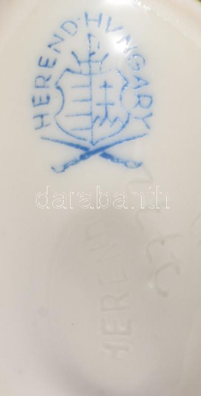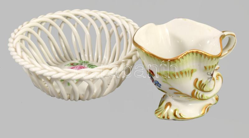 2 db Herendi porcelán Viktória mintás szaru 5 cm + fonott tálka, d: 9 cm. Kézzel festett, jelzett, hibátlan