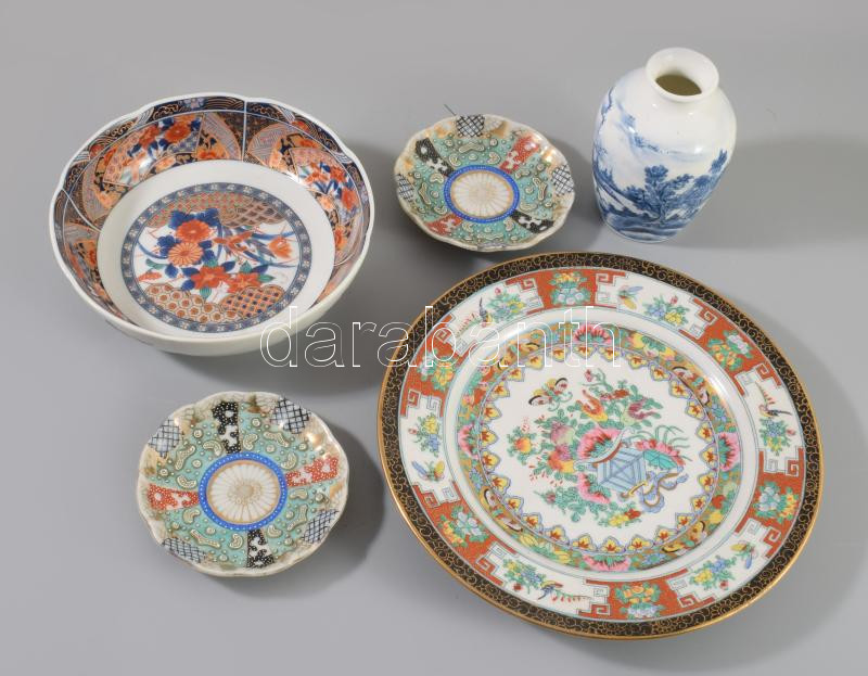 5 darab modern és antik japán és kínai tárgy, közte nívós antik darabokkal, d: 21 cm alatt