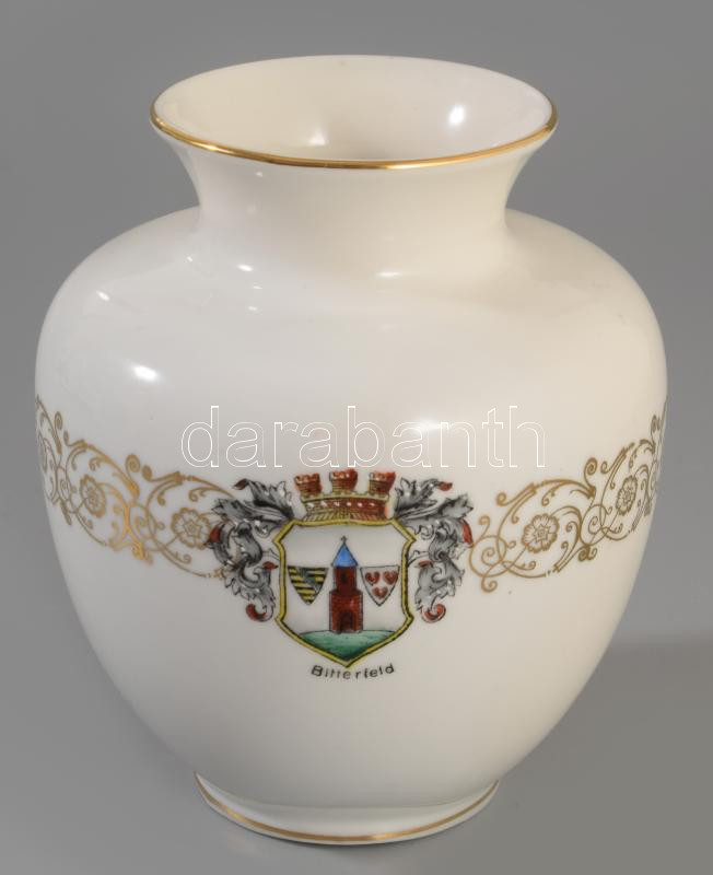 Bauer & Lehmann Bitterfeld mintás váza. Jelzett, részben kézzel festett, hibátlan, m: 13 cm