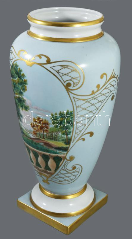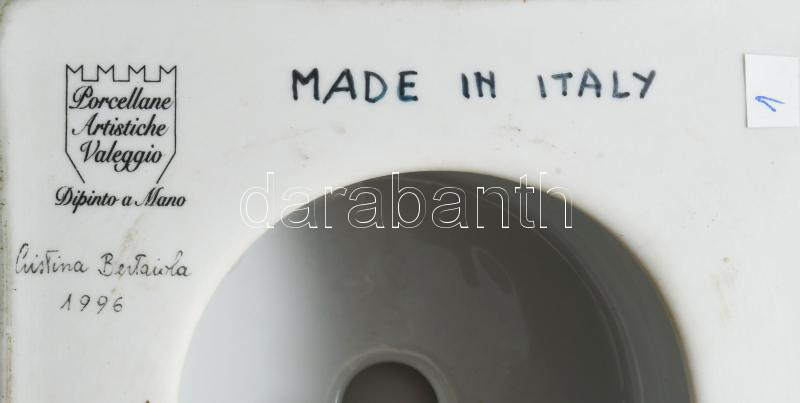 Cristina Bertaiola, Valeggio porcelán nagyváza, kézzel festett, jelzett, kopással, kis repedésvonallal, m: 34,5 cm