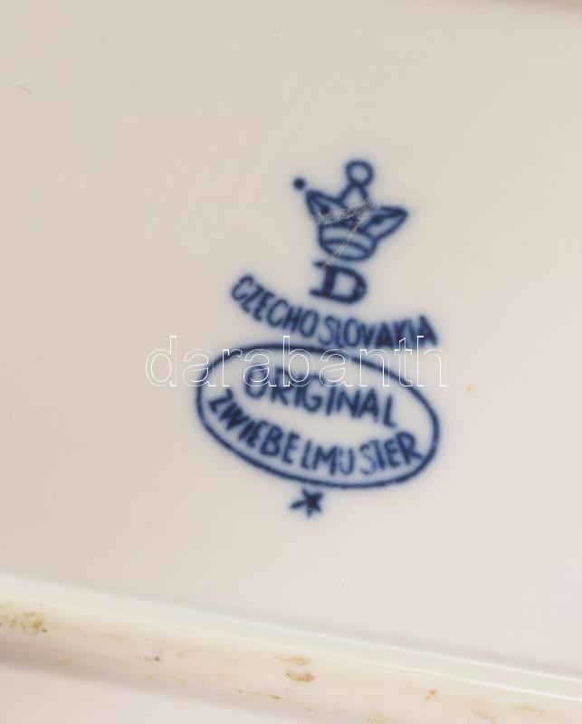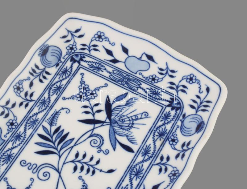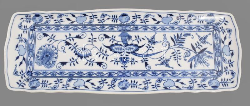 Dubi Bohemia hagymamintás hosszú szervírozótálca, jelzett, hibátlan, 45x16 cm