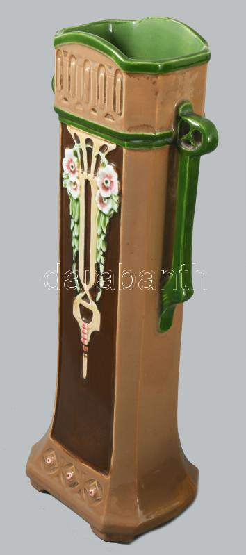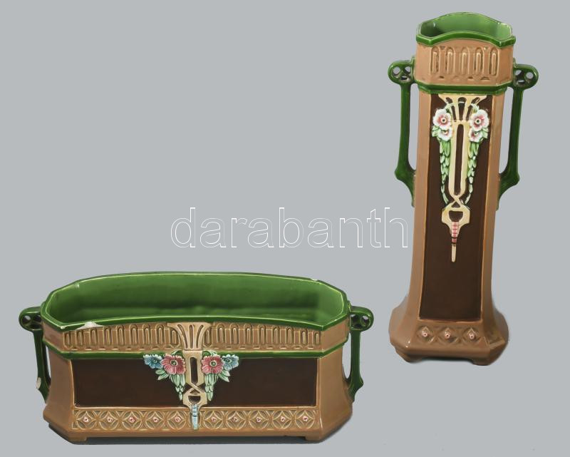Eichwald későszecessziós virágtartó és váza, jelzett, virágtartón mázhibákkal, m: 29,5 cm