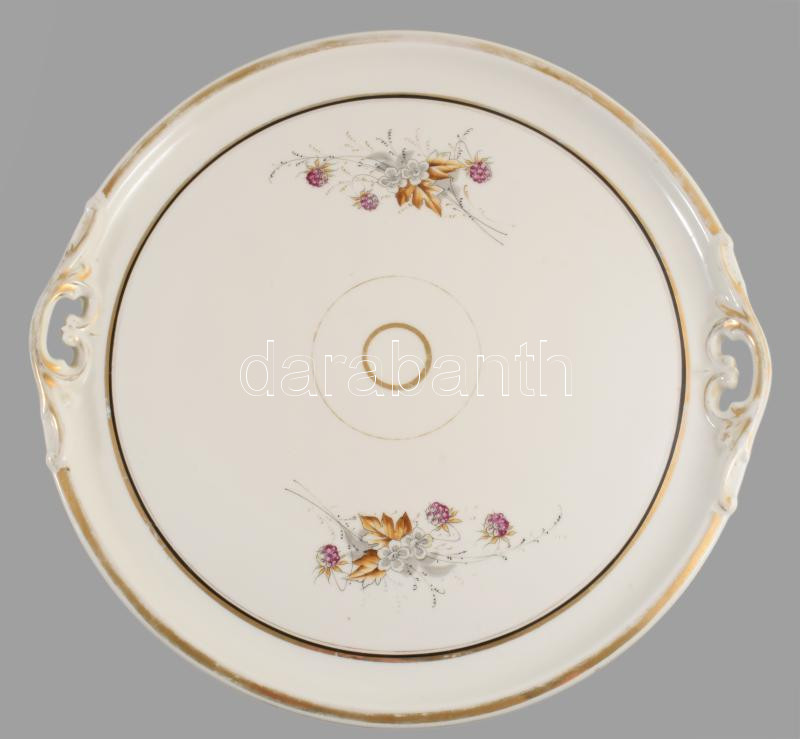 Haas & Czjek antik porcelán szervírozótálca, jelzett, kis kopással, d: 37 cm