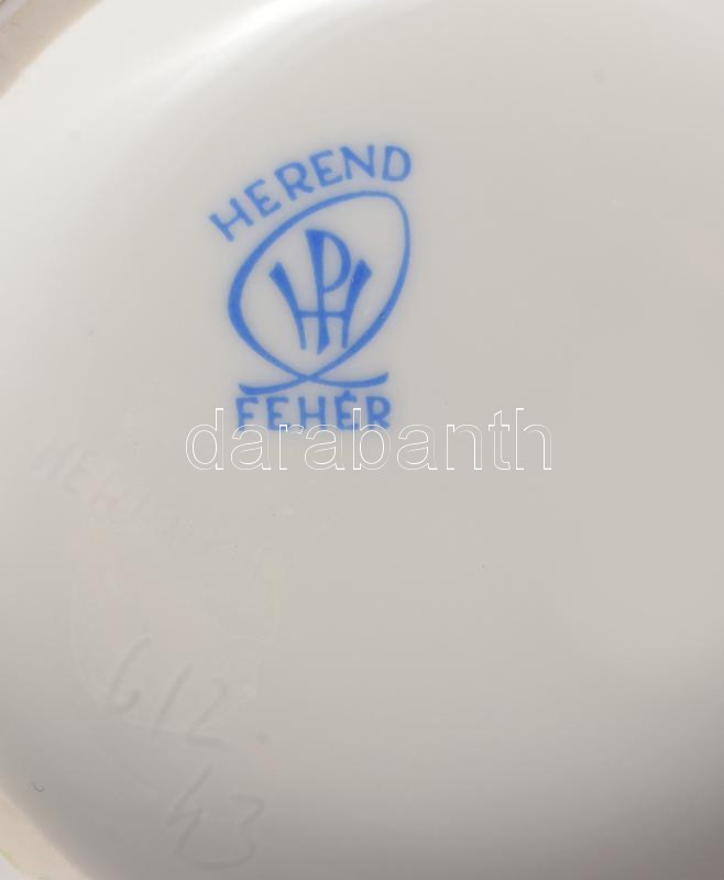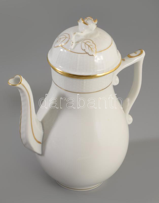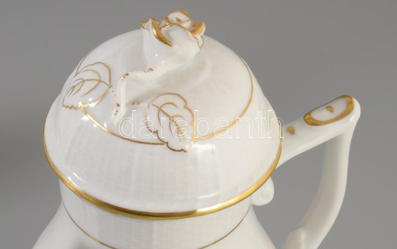 Herendi Fehér kávés kanna rózsa fogóval, jelzett, hibátlan, m: 21 cm