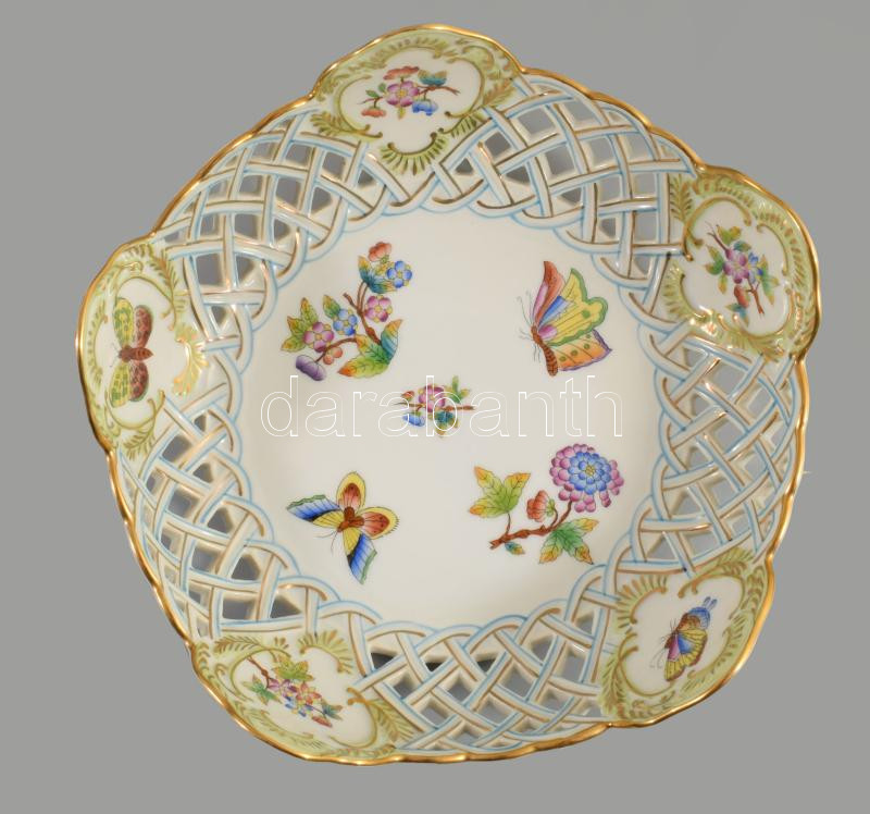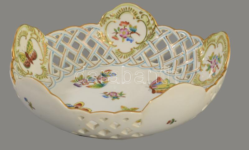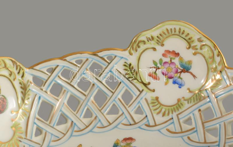 Herendi Viktória mintás áttört kínálótál. Jelzett, kézzel festett, hibátlan, d: 22 cm