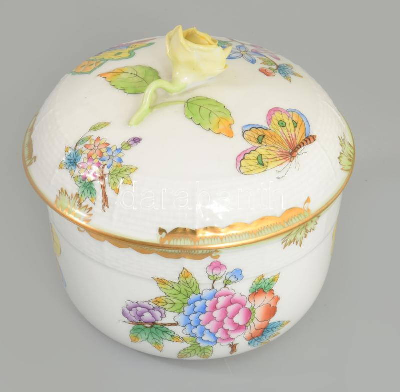 Herendi Viktória mintás cukortartó, jelzett, fogó kis lepattanással, d: 12,5 cm, m: 12 cm