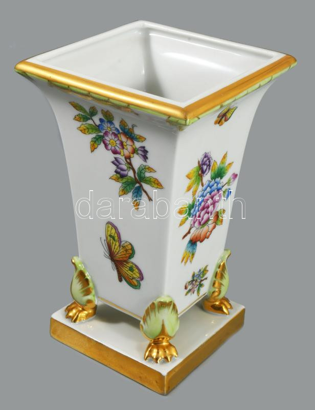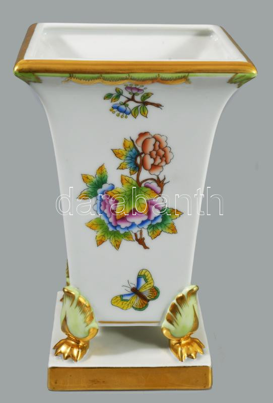 Herendi Viktória mintás oroszlánkörmös négyoldalas váza. Jelzett, kis kopottsággal, m: 17 cm