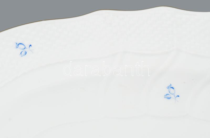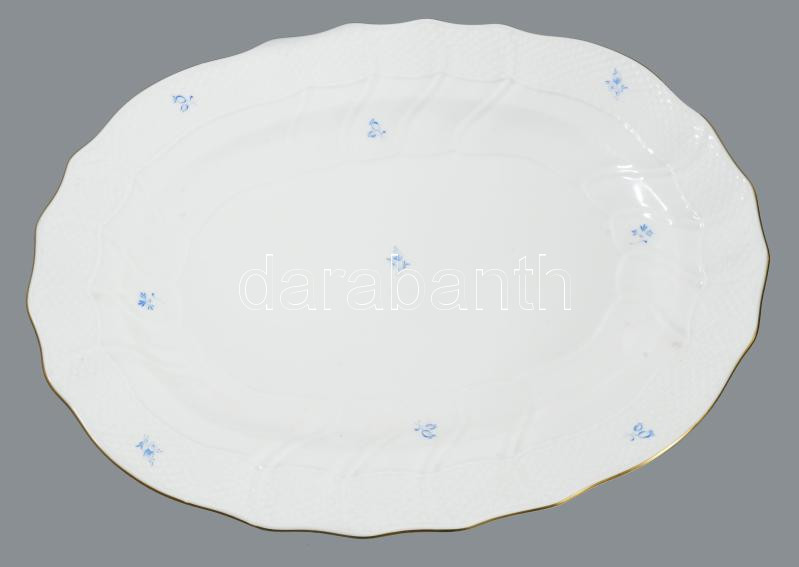 Herendi kék virágmintás pecsenyés tál, elcsiszolt jelzéssel, 42x33 cm