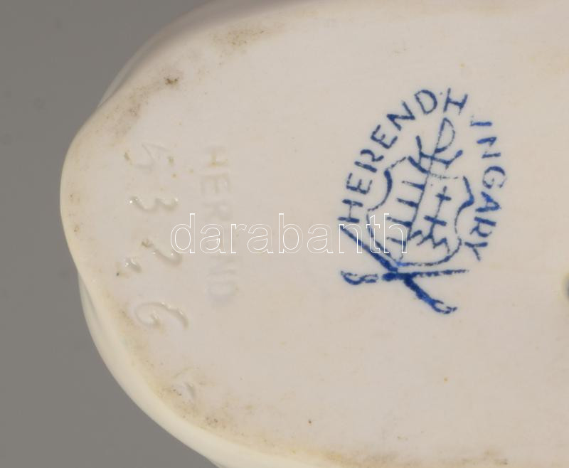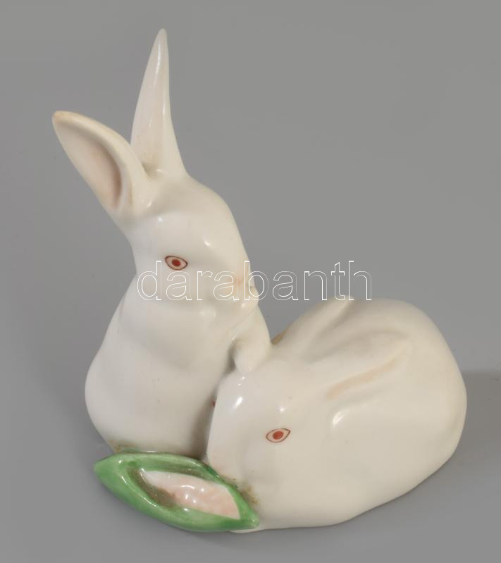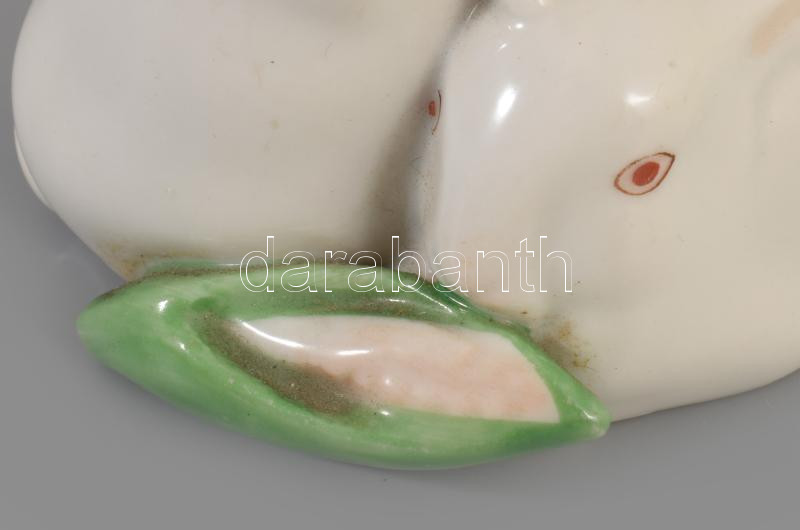 Herendi nyúlpár kukoricával. Jelzett, hibátlan, m: 8,5 cm