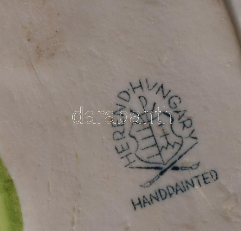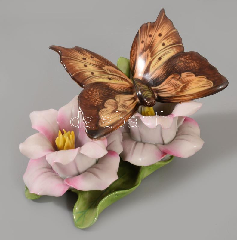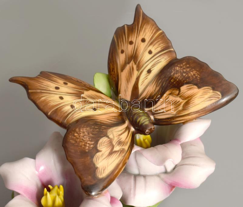 Herendi pillangó virágon asztaldísz. Jelzett, kézzel festett, hibátlan, 12x7,5 cm